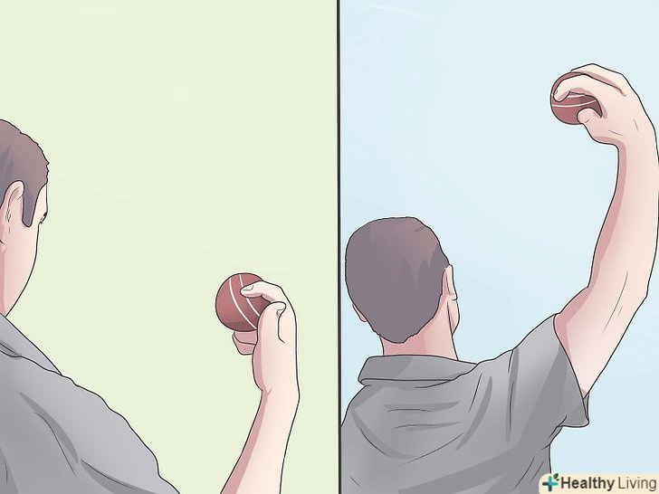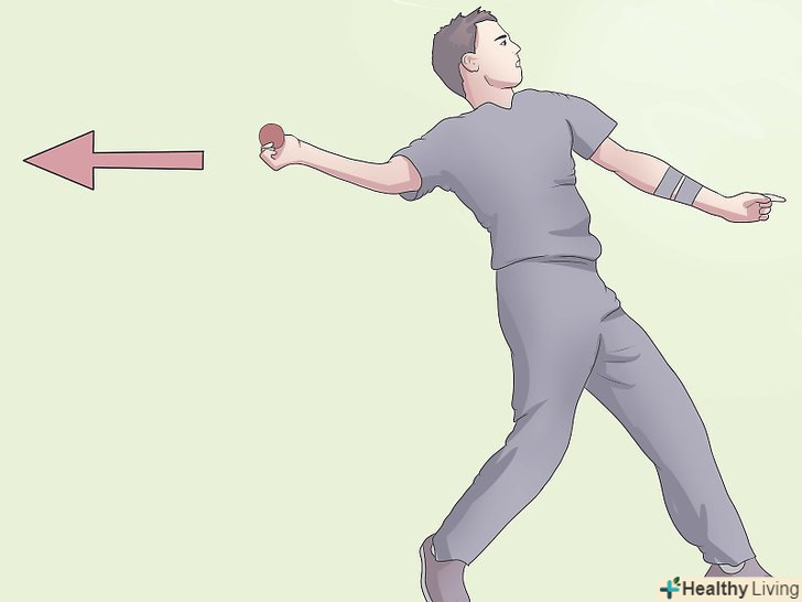 Почніть обертати м'яч, поставивши руку у вертикальне положення недалеко від голови. підніміть кисть руки, долоню повинна дивитися наліво. Перш ніж кинути м'яч, поверніть кисть руки всередину. Киньте м'яч, пересунувши вказівний палець вниз по м'ячу.