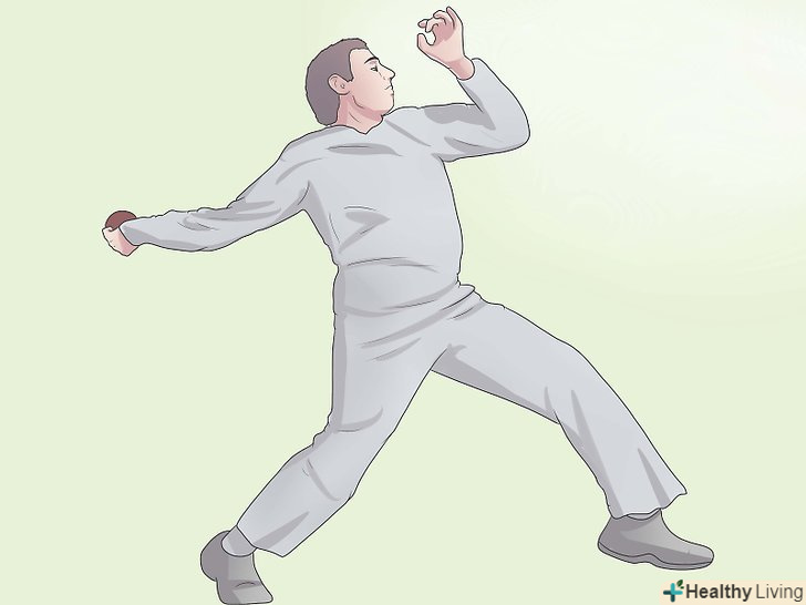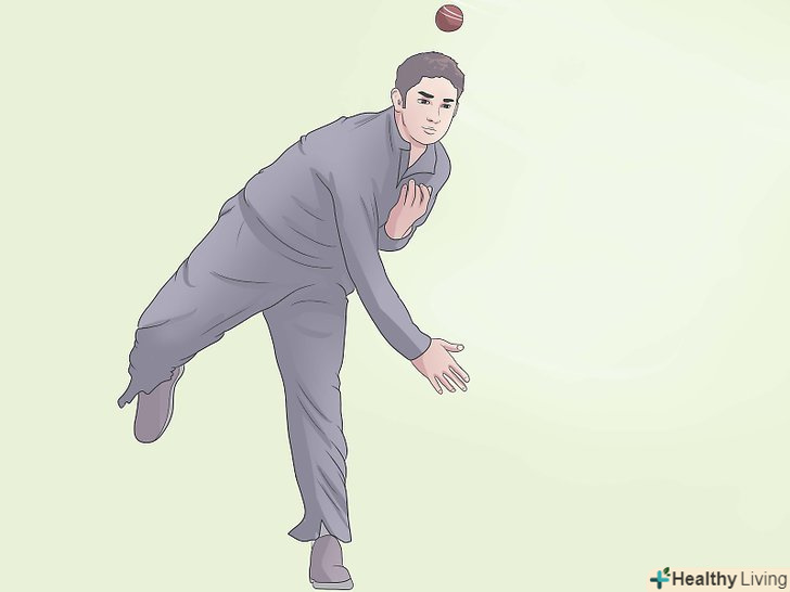 Відпустіть м'яч, закрутивши його за допомогою кисті руки проти годинникової стрілки по вертикальній осі. долоня повинна дивитися назад, як би від м'яча, а не в напрямку гравця з битою.
