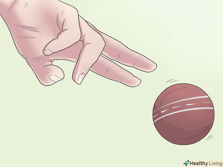 Візьміть м'яч, вам потрібно тримати його між вказівним і середнім пальцем в долоні правої руки. приготуйтеся запустити його вперед.