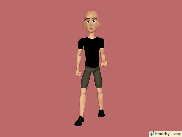 Поставте вашу праву ногу вперед (якщо ви збираєтеся бити лівою рукою). Тримайте коліно злегка зігнутим, ліву ногу відставте назад. Відчуйте легкість в цій стійці.
