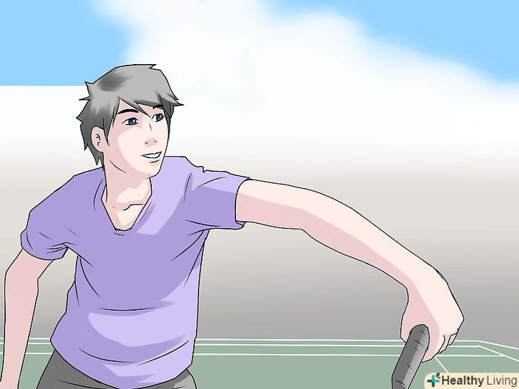 - Продовжуйте рух ракетки, поки вона не вразить волан біля вашого протилежного плеча.