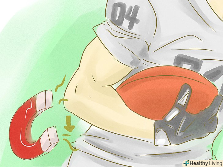 Імітуйте боротьбу за м'яч. щоб стати сильніше і навчитися надійно тримати м'яч і не віддавати його захисникам, часто імітують боротьбу за м'яч, щоб гравці навчилися міцніше його тримати. Чи є це частиною ваших тренувань чи ні, це може бути відмінним способом поліпшити свої навички в компанії одного або двох друзів.- Розбийтеся на пари: один несе м'яч, інший захисник. Той, що біжить буде міцно тримати м'яч, тоді як другий гравець покладе на нього руку і буде намагатися його відібрати протягом 5 ярдів (4,57 м). В кінці п'яти ярдів захисник повинен зробити останній великий ривок, а гравець, у якого м'яч, повинен його утримати і пробігти з ним ще 5 ярдів, щоб завершити вправу.