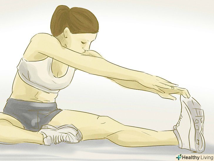 Займіться йогою. Йога допомагає розвинути гнучкість тіла, що грає важливу роль при бігу. Включіть вправи йоги в свою ранкову гімнастику, і ви відчуєте збільшену гнучкість протягом усього дня [10] .- Практикуйте, наприклад, вправу"поза корови". Сидячи на підлозі, підігніть одну ногу, торкнувшись п'ятою стегна другої ноги [11] .