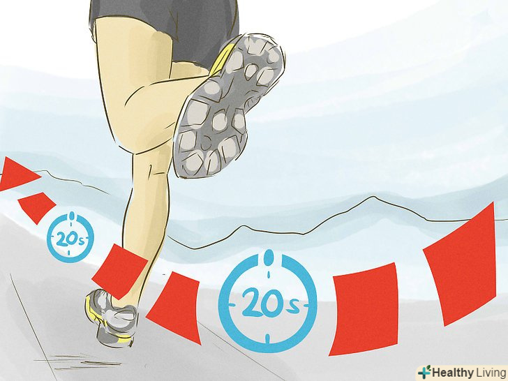Використовуйте автоматичну бігову доріжку. на такій доріжці можна виставити необхідну швидкість; у міру тренувань поступово підвищуйте цю швидкість. Також можна підвищувати швидкість протягом певних інтервалів часу (інтервальні тренування) [35] .- При бігу на доріжці підвищуйте швидкість на 1-5 хвилин, потім знову знижуйте її до початкового рівня.