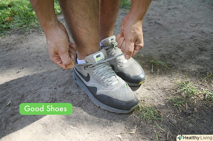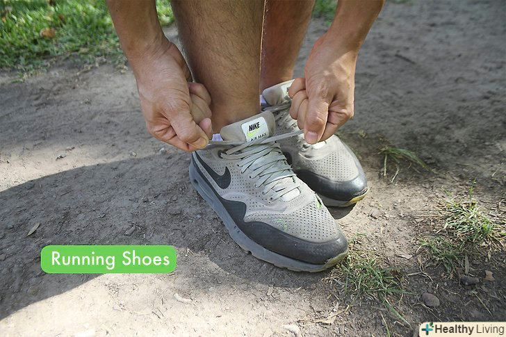 Підберіть спеціальне взуття. бігові кросівки повинні сидіти на нозі максимально щільно, але не тиснути. Ви ж не хочете відволікатися на мозолі під час бігу. Чим довше ви будете бігти, тим краще повинна бути ваша взуття.- Якщо ви бігаєте кожен день, однієї пари бігових кросівок вам вистачить на 4-6 місяців. Якщо в якийсь момент ноги почнуть різко боліти-прийшов час купити нову пару.