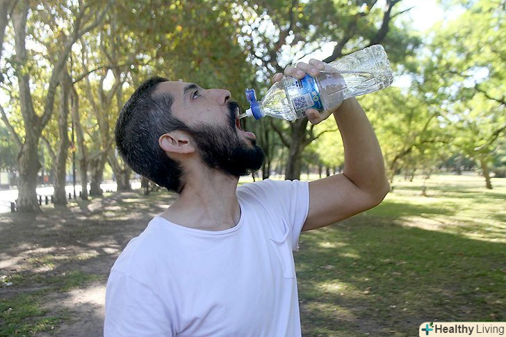 Не допускайте зневоднення. вкрай важливо підтримувати водний баланс протягом усього забігу. Якщо вам потрібно бігти довше 50 хвилин в жаркий день, зупиніться, щоб випити води. Якщо ви берете пляшку з водою з собою, пийте маленькими ковтками і по чуть-чуть. Якщо випити багато води в середині кросу, ноги може звести судомою, а ви можете захотіти в туалет.- По можливості пийте холодну воду. Чим холодніше вода, тим швидше вона засвоїться організмом. [12] оскільки ви будете багато потіти, дуже важливо пити вчасно.