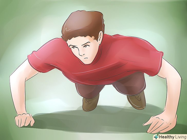 - Віджимання. Прийміть вихідне положення: упор лежачи на підлозі, кожен раз піднімайте корпус вгору розпрямляючи руки.
