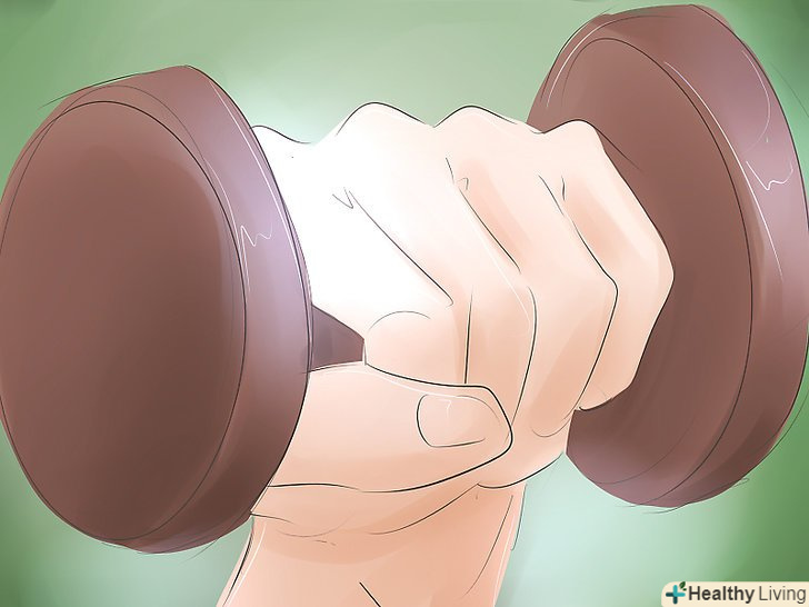 Додайте гантелі (або будь-який інший вага) через 1-2 тижні. до третього тижня вам потрібно використовувати гантелі вагою від 3 до 13,6 кілограм кожна для того, щоб збільшити опір і, таким чином, ускладнити вправи.- Будьте обережні при використанні додаткової ваги. Краще починати з легких гантелей і поступово використовувати важче, ніж завдати шкоди своєму тілу, використовуючи відразу важкі гантелі.