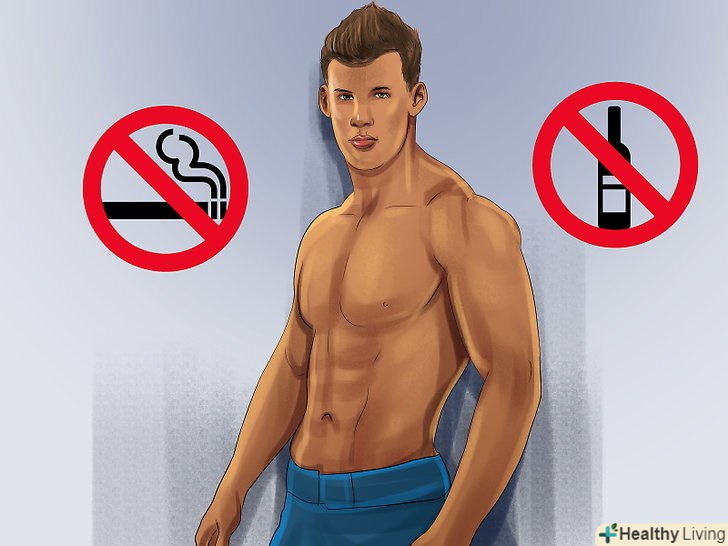- Пийте помірно (або відмовтеся від алкоголю). Алкоголь зневоднює організм. При надмірному вживанні алкоголь заважає організму засвоювати білок з їжі. [15] це означає, що вам доведеться працювати ще більше, щоб наростити м'язову масу.