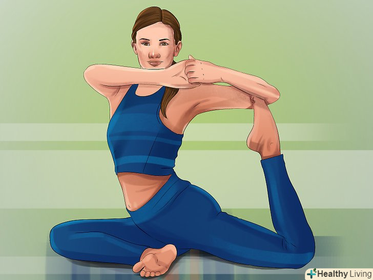- Потягніть чотириголовий м'яз. Встаньте на одну ногу і візьміться за щиколотку другої ноги. Обережно потягніть її назад. Якщо вам складно стояти на одній нозі, напружте живіт.
