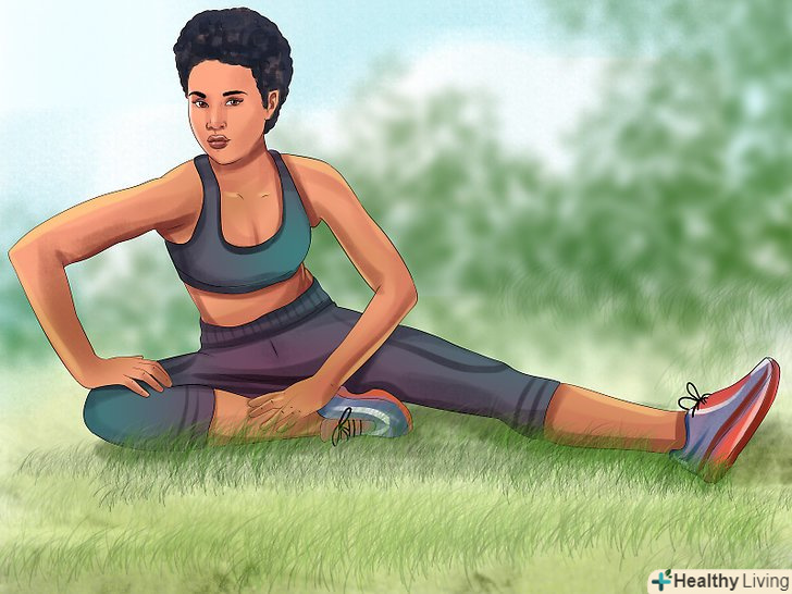 Виконуйте вправи на розтяжку. не потрібно згинатися як гімнаст — досить пари простих вправ на розтяжку. Вони захистять вас від травм. Тягніть як руки, так і ноги, оскільки плече теж може звести судомою. Розтягуйтеся до і після кожної пробіжки, а також після пробудження. Обов'язково розігрівайте м'язи перед розтяжкою-тягнути потрібно тільки розігріті м'язи.- Потягніть ахіллове сухожилля. Сядьте на підлогу, витягніть перед собою одну ногу, другу зігніть в коліні так, щоб коліно стикалося з підлогою, а ступня стосувалася коліна другої ноги. Потягніться вперед до зігнутої ноги і затримайтеся в цьому положенні.