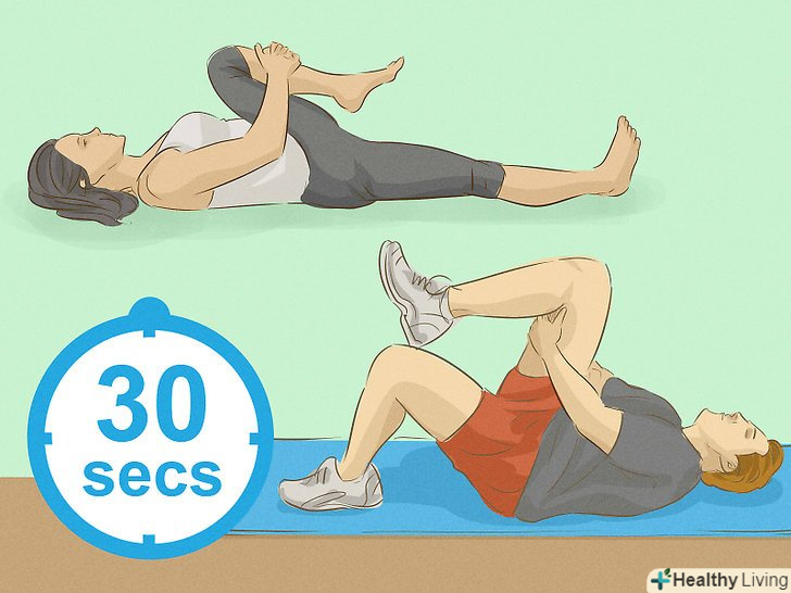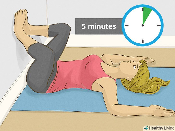 Зробіть розтяжку на виворотність стегон. замість того, щоб просто розслабити ноги, поклавши їх на стіну, ви можете лягти, підтримуючи ноги лавкою. Ця вправа розроблена для виштовхування від стіни зігнутої вільної ноги. Ви також можете підтягнути коліна до грудей, щоб розтягнути м'язи стегна.