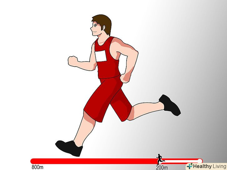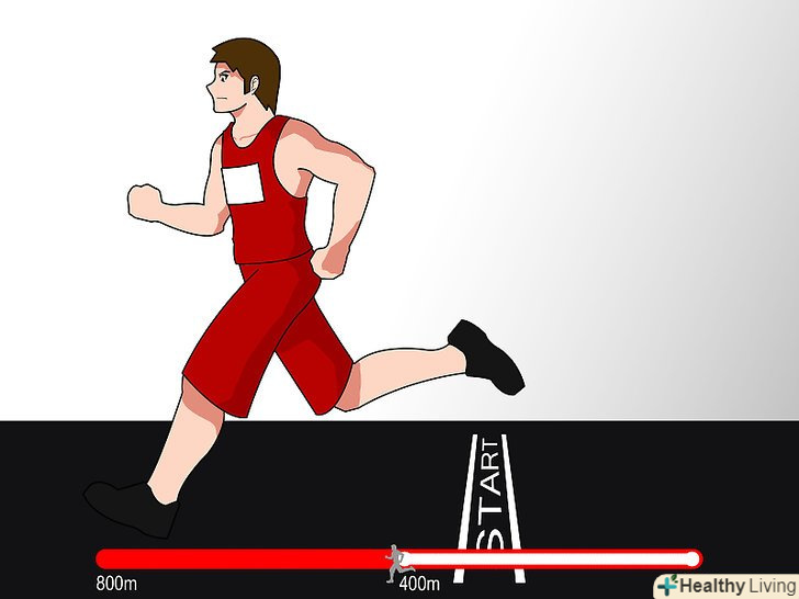 Розвивайте свій темп плавно. Як тільки ви ввійдете в ритм на перших 200-х метрах, спробуйте не зменшувати швидкість, хоч це і неминуче. Сфокусуйтеся на відмітках (ви побачите покажчики кожні 100 метрів, а до кінця траси кожні 50 або навіть 10 метрів) щоб розрахувати свої сили і стратегію до самого фінішу.