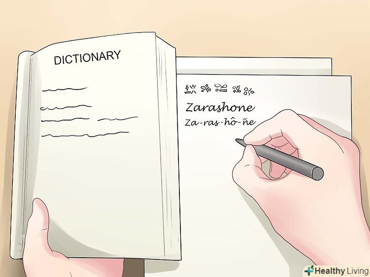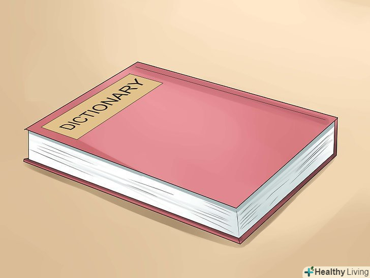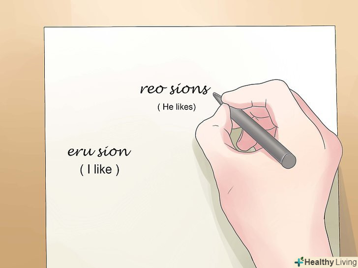 Створіть словникову базу.це будуть слова для вашої мови. Почати слід з загальновживаних слів, а потім переходити до більш рідкісним.- Починайте з основоположних і часто використовуваних слів. Це будуть займенники, прийменники і т.д. потім переходите до дієслів на кшталт "бути", "мати", "любити", "ходити" і "робити". Не забувайте про голосних буквах, вони дуже важливі для звучання мови.