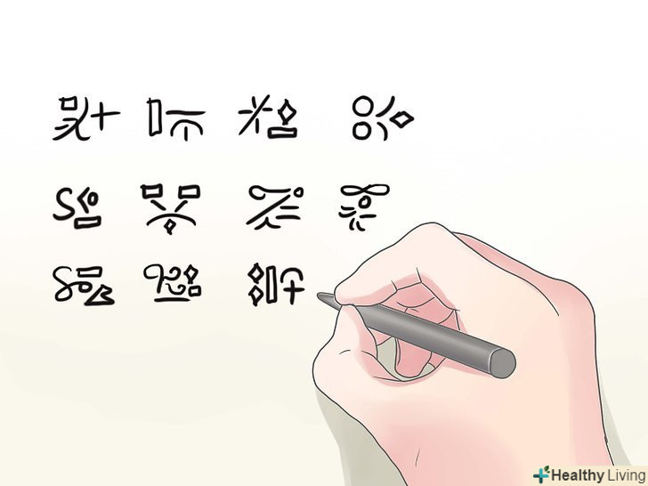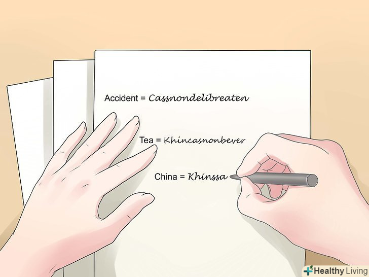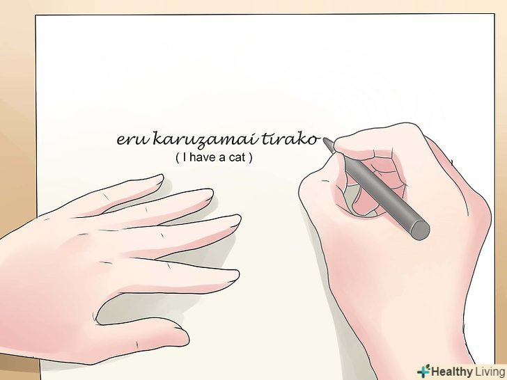 Створіть алфавіт.тут починається свобода творчості. Можна придумувати все, що завгодно. Перед вами кілька шляхів:- Використовувати піктограму або Символи. У багатьох мовах на зразок китайського для відображення усного мовлення використовується піктограма або Символи. Вибравши такий варіант, вам доведеться придумати вимова кожного окремого символу. Кожен символ матиме власне унікальне звучання. Хорошим прикладом є числа. Це гарний, але трудомісткий спосіб.
