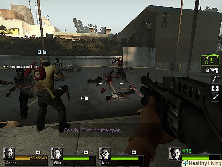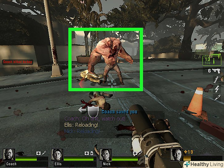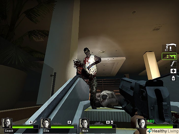 Навчіться грати за зомбі в режимі "Versus". у цьому режимі 4 гравці отримують можливість зіграти за курців, товстунів, мисливців та інших особливих зомбі, борючись при цьому проти іншої четвірки, також керованої людьми. Гра за зомбі-це, по суті, зовсім інша гра! Кращий рада, який можна тут дати – просто згадайте всі ті рази, коли зомбі вас вбивали. Якими атаками вас відбивали від напарників? Коли вас ловили зненацька? Коли вас били болючіше, ніж ви могли витримати?- Найкраще координувати момент нападу разом з напарниками. Товстуна може вирвати, тоді набіжить натовп зомбі, а це дозволить вмілої плевальниці загнати людей в кут.
