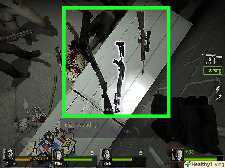 Навчіться користуватися серйозною зброєю. у серії Left 4 Dead багато всякої зброї, і у всього є свої сильні і слабкі сторони. На початку гри у вас буде доступ лише до мізерного асортименту, проте з ходом гри ситуація зміниться на вашу користь.- Дробовики: хромовані помпові і автоматичні дробовики виключно хороші для ближнього бою. Вони боляче б'ють, а дріб лягає зовсім навіть не купчасто. На жаль, на далеких дистанціях дробовики не ефективні – точність замала. Зате в коридорах та інших тісних приміщеннях дробовик – кращий друг виживаючого!