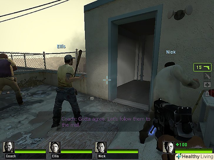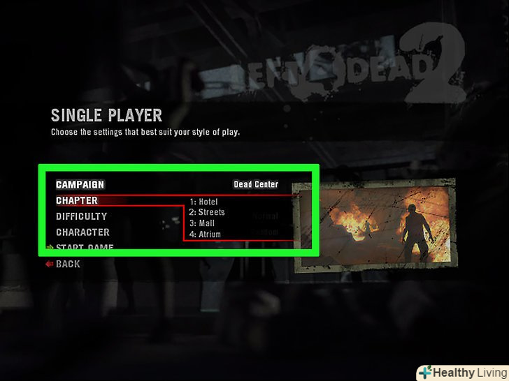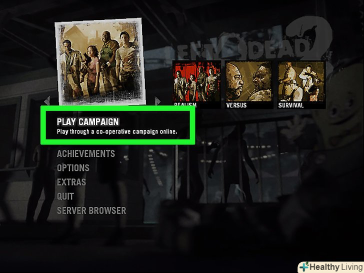 В ігровому меню виберіть режим гри. на головній сторінці виберіть "Campaign", потім виберіть карту "Dead Center". Якщо в шутери ви раніше не грали, виставте складність на мінімальну і почніть гру. Ви почнете грати в однокористувацькому режимі, де з вами буде бігати 3 керованих грою персонажа. У такому складі ви і будете прорубуватися крізь зомбі.- Персонажі відрізняються тільки зовнішнім виглядом, діють же вони все однаково.