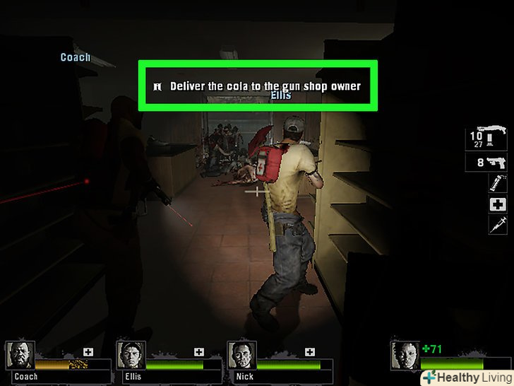 Пересувайтеся по рівнях якомога швидше. зомбі будуть з'являтися на карті, навіть якщо ви стоїте і не рухаєтеся. На відміну від багатьох ігор, тут зомбі не розставлені за рівнем гейм–дизайнером. Відповідно, чим довше ви стоїте, тим складніше буде потім. Вам потрібно постійно рухатися вперед, причому всім разом, і ретельно вичищати від зброї і припасів всі кімнати, що вам попадуться, перш ніж йти далі. Кімнати, до речі, варто досліджувати так: двоє стоять у дверях зі зброєю напоготові, двоє займаються вимушеним мародерством в кімнаті.- Коли вам потрібно відкрити двері, натиснути на кнопку або іншим чином запустити якусь подію (про що буде написано на екрані), то не поспішайте. Попередьте напарників, дайте їм можливість підлікуватися, перезарядитися і так далі. Потім-вперед, команда, до успіху! [3]