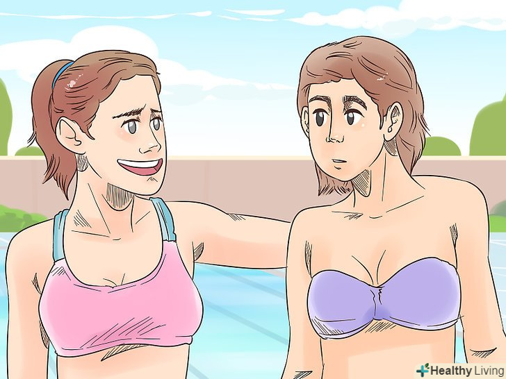 Практикуйте разом з другом. незалежно від того, відвідуєте ви курси плавання або вчіться плавати самостійно, заняття з близьким другом допоможуть зменшити стрес, і вам буде набагато комфортніше. [5]