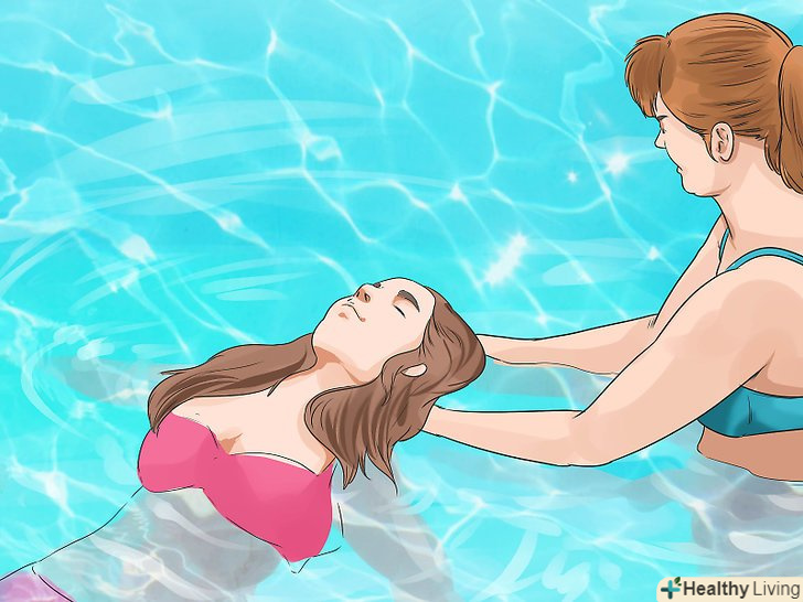 Візьміть собі помічника. в перший раз не варто намагатися плавати на спині одному. Навіть якщо ви освоїли інші основні техніки плавання, і ви пробуєте плавати на спині в перший раз, то ви повинні не тільки мати помічника, але також вам слід переконатися, що в даному місці є рятувальники, які можуть прийти на допомогу в разі необхідності.- Помічник буде тримати руку під вашою спиною, що дозволить вам привести тіло в належне положення, до тих пір, поки ви не відчуєте себе комфортно для виконання техніки самому.