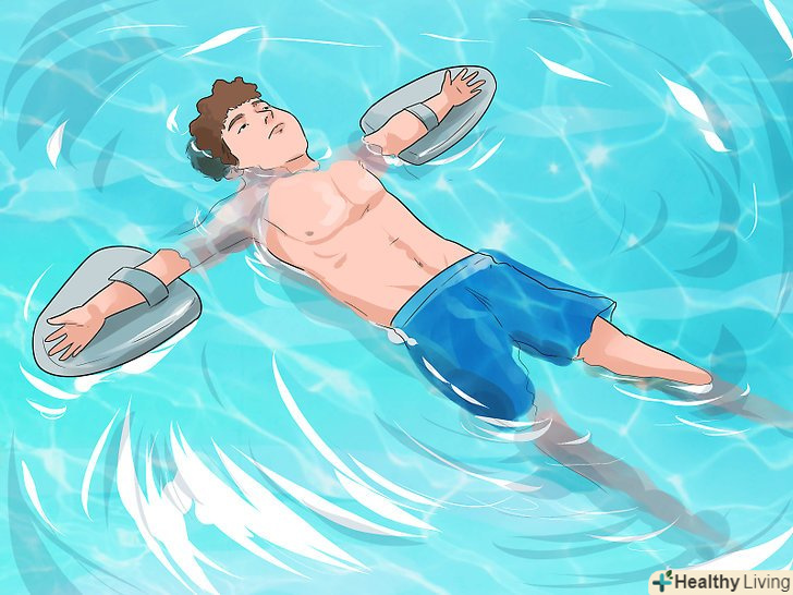 Спробуйте використовувати пристрій для плавання. використання особистого плавзасобу, надітого на руки або на середину тулуба, також дозволить вам відчути себе більш комфортно у воді. Якщо ви навчалися за допомогою тренера, але ще не цілком готові спробувати плавати на спині одному, спробуйте використовувати плавзасіб до тих пір поки ви самі не відучитеся від цього.