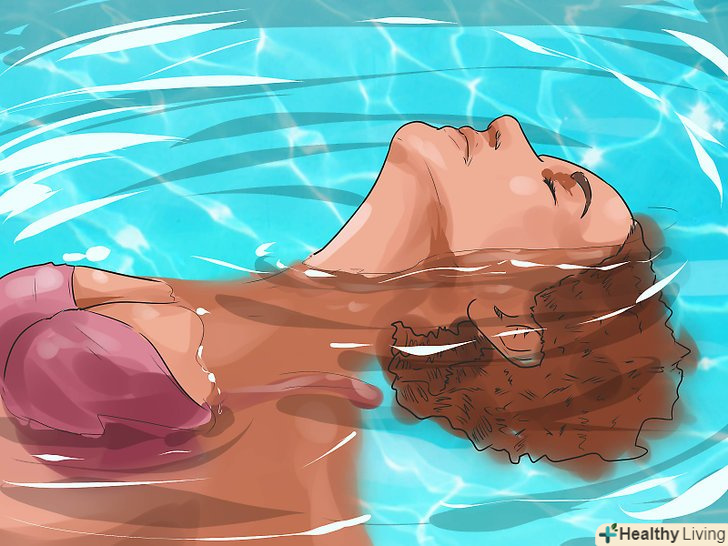 Відчуйте себе комфортно у воді. для того щоб плавати на спині без будь-якої паніки, ви повинні бути спокійними і розслабленими у воді, навіть якщо ви не експерт з плавання. Ви повинні навчитися плавати на спині в плавальному басейні, а не в океані або озері, де є хвилі. В ідеалі, ви повинні відчувати себе досить комфортно у воді і знати, як проплисти від одного кінця басейну до іншого без будь-якої допомоги.- Якщо ви починаєте навчання плавання з техніки плавання на спині, то ви повинні бути ще більш обережні і весь час перебувати зі своїм тренером.