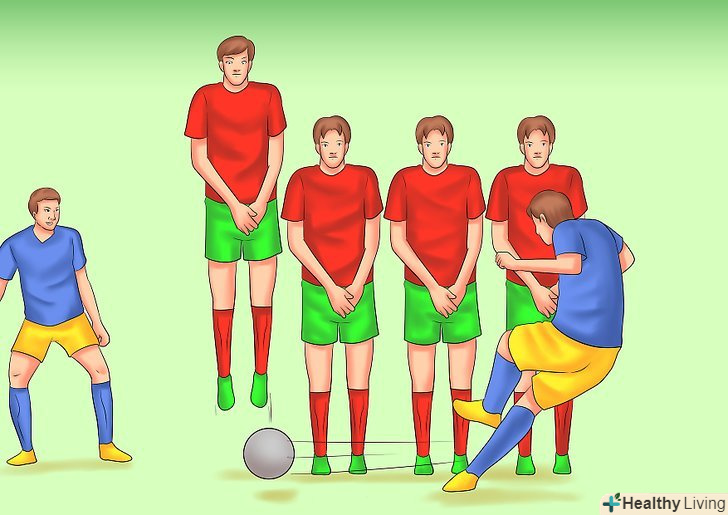 Переправте під стінкою. захисники, які формують стінку для захисту при вільному ударі, часто інстинктивно підстрибують при ударі по м'ячу. Це особливо помітно, коли ви знаходитесь близько до воріт і вже зробили кілька ударів по стіні, намагаючись перекинути її. Хитрий трюк цілиться настільки низько, наскільки можливо і сподівається, що м'яч пройде під захисниками, і товариші по команді зроблять удар. Переправте під стінкою. захисники, які формують стінку для захисту при вільному ударі, часто інстинктивно підстрибують при ударі по м'ячу. Це особливо помітно, коли ви знаходитесь близько до воріт і вже зробили кілька ударів по стіні, намагаючись перекинути її. Хитрий трюк цілиться настільки низько, наскільки можливо і сподівається, що м'яч пройде під захисниками, і товариші по команді зроблять удар.