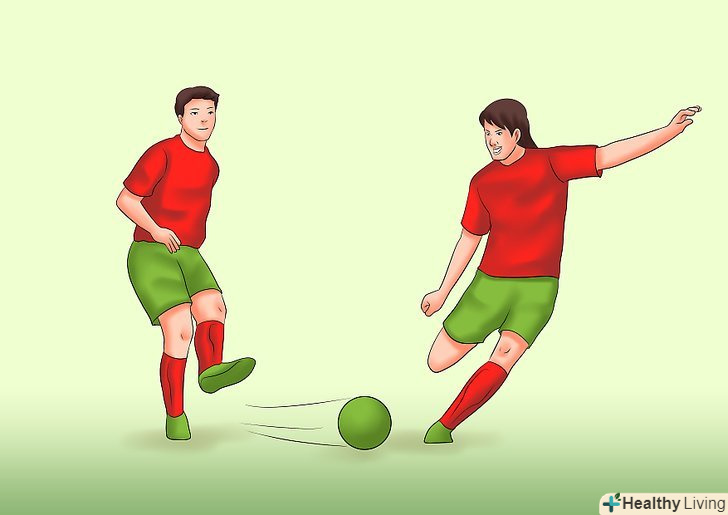 - Викидайте ноги в напрямку руху суперника. Так, якщо ви біжите один на одного, викидайте ноги назад. Якщо ви біжите паралельно один одному, ноги слід викидати вперед.