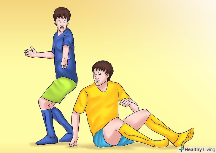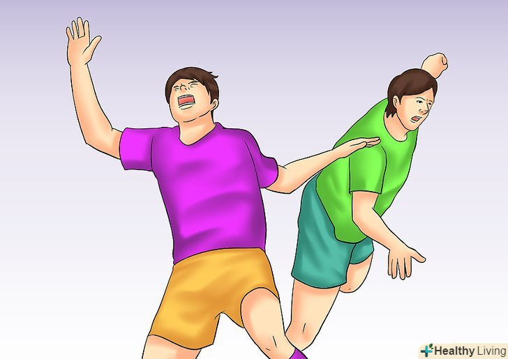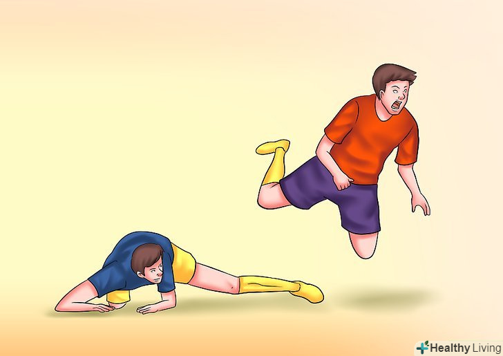 - Падайте додолу, комічно виття від болю. Схопитеся за щиколотку або щелепу — будь-яке місце, по якому ваш суперник, можливо, вдарив, ніби він вам щось майже зламав. Катайтеся по землі комічно з болючим відчаєм на обличчі. Нехай все виглядає погано.