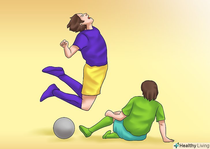 - Дайте імпульсу вашого супротивника вплинути на силу, з якою ви викидаєте ноги. Буде найкраще, якщо інший гравець біжить дуже швидко, так симуляція не викличе сорому. Противнику обов'язково потрібно бігти швидко, щоб викидання ніг виглядало реалістично.