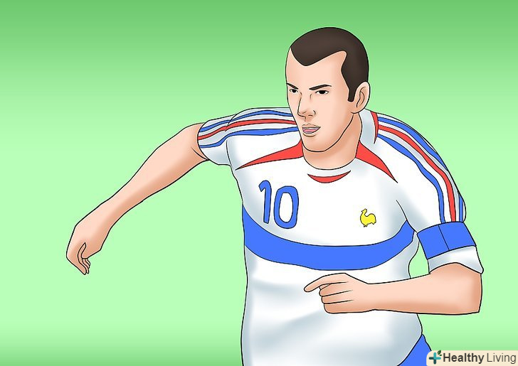 Спробуйте фінт Зідана. Ні, не треба підходити до захисника і лупити його головою в груди. Навпаки, це поворот на 360 градусів з м'ячем, який залишить вашого суперника ковтати пил. Легкий в практиці, але кілька складний при застосуванні в грі. Однак, правильно застосований, він має руйнівний ефект. Виконуйте його, коли противник йде на вас лоб в лоб. [3] Спробуйте фінт Зідана. Ні, не треба підходити до захисника і лупити його головою в груди. Навпаки, це поворот на 360 градусів з м'ячем, який залишить вашого суперника ковтати пил. Легкий в практиці, але кілька складний при застосуванні в грі. Однак, правильно застосований, він має руйнівний ефект. Виконуйте його, коли противник йде на вас лоб в лоб. [3]- Ведучи м'яч на зручній для вас швидкості, наступите на м'яч провідною ногою, щоб зупинити його і розгорніть тіло на 180 градусів. Якщо ви наступаєте на м'яч правою ногою, то розвертайтеся через ліве плече, поки не побачите те, що було ззаду.