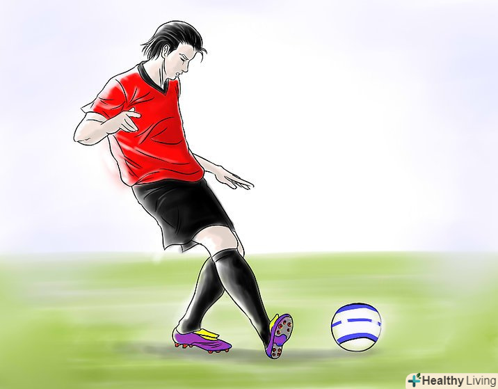 Внутрішньою стороною стопи ударної ноги м'яко доторкніться до центру м'яча.