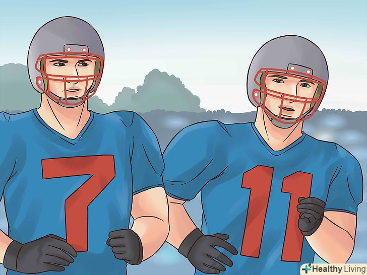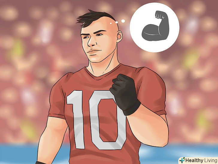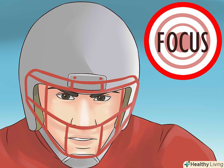 Зберігайте психічну стійкість. психологічна підготовка триває аж до початку гри. У професійних гравців є безліч різних методів, які допомагають їм зберегти концентрацію на грі. [17] Зберігайте психічну стійкість. психологічна підготовка триває аж до початку гри. У професійних гравців є безліч різних методів, які допомагають їм зберегти концентрацію на грі. [17]- Відомий вислів Йоги Берра про те, що «90% гри в бейсбол відбувається в голові гравця», застосовується і до американського футболу. Сконцентруйтеся на грі!