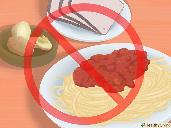 Щільно повечеряйте за кілька годин до сну. збалансоване харчування складається з усіх трьох поживних речовин, необхідних для життєдіяльності людини (вуглеводи, жири і білок). Співвідношення цих речовин має підходити для організму і способу життя людини. [7] незважаючи на це, багато тренерів рекомендують в останню ніч перед виснажливими тренуваннями або спортивними заходами з'їдати їжу, що складається в основному з вуглеводів, щоб мати сили на наступний день. [8] Щільно повечеряйте за кілька годин до сну. збалансоване харчування складається з усіх трьох поживних речовин, необхідних для життєдіяльності людини (вуглеводи, жири і білок). Співвідношення цих речовин має підходити для організму і способу життя людини. [7] незважаючи на це, багато тренерів рекомендують в останню ніч перед виснажливими тренуваннями або спортивними заходами з'їдати їжу, що складається в основному з вуглеводів, щоб мати сили на наступний день. [8]- Хоча недавні дослідження піддають сумніву ефективність "завантаження вуглеводами «(метод» завантаження" складними вуглеводами за день до виснажливих заходів), подивіться самі, чи підійде він вам. [9]