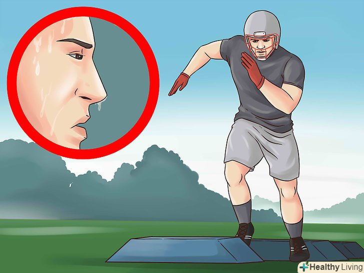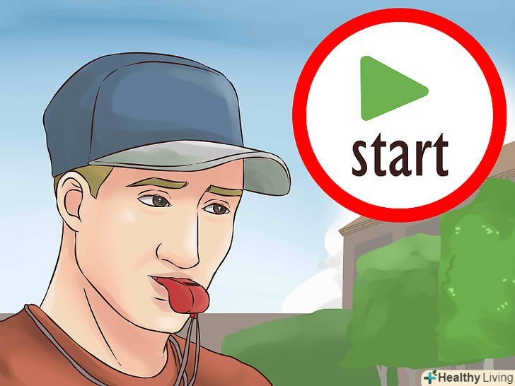 Розігрійтеся або проведіть невелику розминку. Не важливо, що це буде: швидкий біг або підйом невеликих ваг, необхідно якось розігріти основні групи м'язів і підготувати їх до фізичних навантажень в змагальній грі. [18] Розігрійтеся або проведіть невелику розминку. Не важливо, що це буде: швидкий біг або підйом невеликих ваг, необхідно якось розігріти основні групи м'язів і підготувати їх до фізичних навантажень в змагальній грі. [18]- Якщо під час роботи вам буде не вистачати дихання для підтримки розмови, значить, ви намагаєтеся занадто сильно. Не поспішайте, це всього лише розминка!