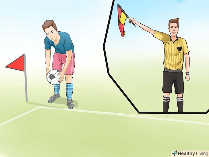 - Якщо помічник арбітра стоїть біля лицьової лінії і направляє прапор вниз під кутом 45 градусів у бік кутового прапорця, тоді необхідно виконати кутовий удар.