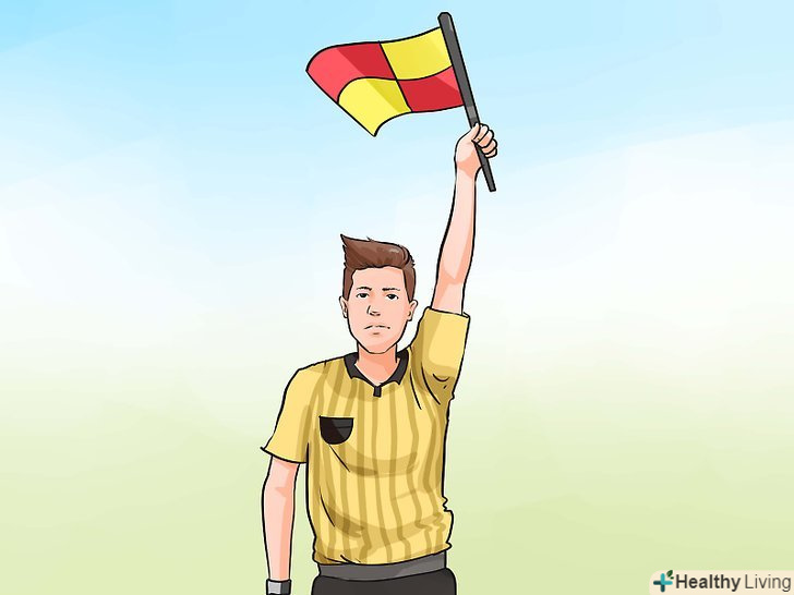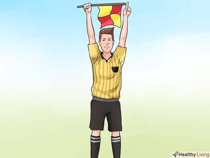 Інші сигнали. якщо бічний суддя просто тримає прапор піднятим після свистка, то він повідомляє про необхідність бесіди з головним арбітром. Це може статися в тому випадку, якщо, наприклад, гравець починає його ображати або він фіксує зовнішній вплив. Зокрема, якщо він хоче повідомити, що гравець заслужив жовту або червону картку, то він кладе руку поверх значка на грудях. Інші сигнали. якщо бічний суддя просто тримає прапор піднятим після свистка, то він повідомляє про необхідність бесіди з головним арбітром. Це може статися в тому випадку, якщо, наприклад, гравець починає його ображати або він фіксує зовнішній вплив. Зокрема, якщо він хоче повідомити, що гравець заслужив жовту або червону картку, то він кладе руку поверх значка на грудях.