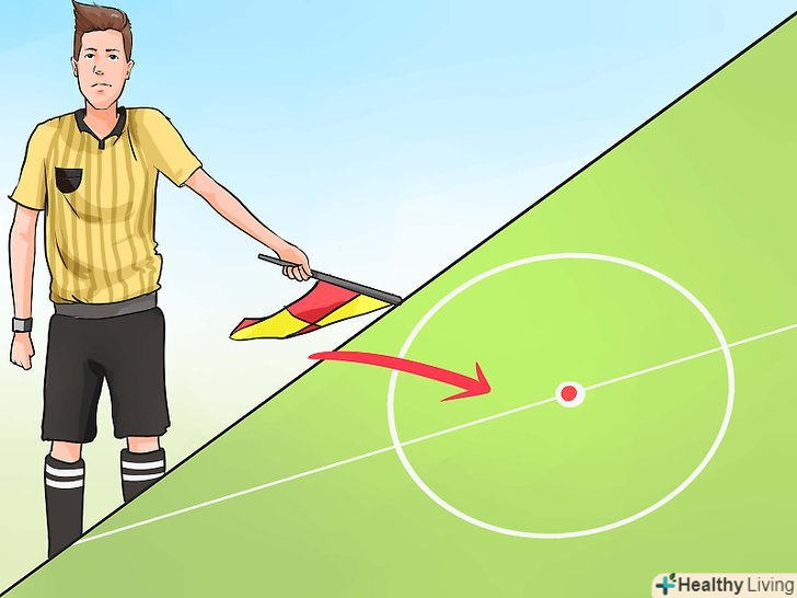 - Якщо помічник арбітра стоїть біля лицьової лінії і показує на ворота, тоді необхідно виконати удар від воріт.