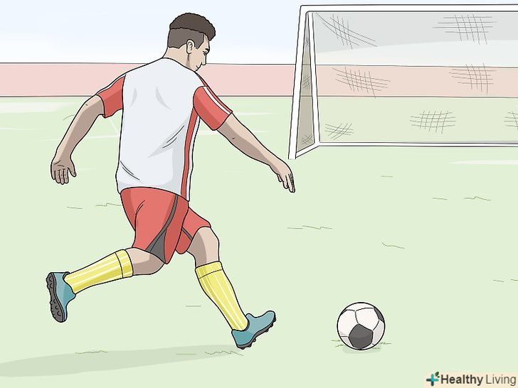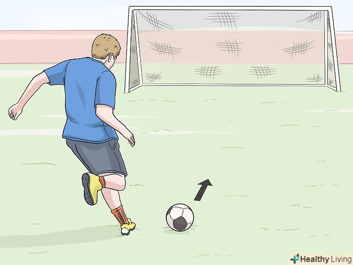 Робіть розбіг коротким кроком. зближуючись з м'ячем, укорочуйте крок. Саме так зазвичай пробивають штрафні удари, що часто застосовується в професійному футболі. Якщо ви біжите з м'ячем, укоротите крок перед ударом для забезпечення більшої потужності удару і контролю м'яча. [1] Робіть розбіг коротким кроком. зближуючись з м'ячем, укорочуйте крок. Саме так зазвичай пробивають штрафні удари, що часто застосовується в професійному футболі. Якщо ви біжите з м'ячем, укоротите крок перед ударом для забезпечення більшої потужності удару і контролю м'яча. [1]