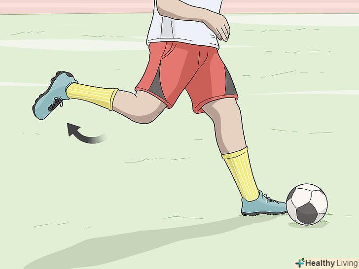 Зробіть замах б'є ногою, відвівши її назад і злегка зігнувши при цьому в коліні опорну ногу. не замахується занадто широко, інакше у вас не вийде швидко повернути ногу вперед для нанесення точного удару. [4] Зробіть замах б'є ногою, відвівши її назад і злегка зігнувши при цьому в коліні опорну ногу. не замахується занадто широко, інакше у вас не вийде швидко повернути ногу вперед для нанесення точного удару. [4]- Великий замах дієвий при далеких ударах і пасах.