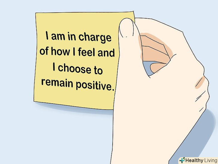 ЗберігайтеПозитивний погляд на світ . ставтеся до роботи з ентузіазмом. Починайте кожен новий день з оптимістичною ноти і намагайтеся не втрачати її по ходу дня. Розташуйте на робочому столі хоча б один предмет жовтого кольору (якщо це дозволено). Завжди тримайте при собі список позитивних тверджень. Або запам'ятайте, або запишіть їх і покладіть в сумку, кишеню або на стіл своєї робочої кабінки.- Жовтий колір надає позитивний психологічний ефект на стан людини. [10]