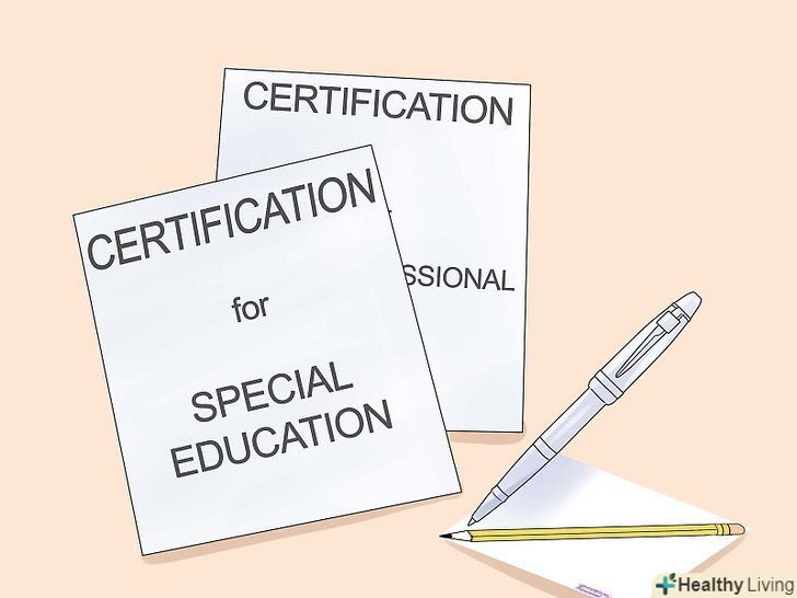 Пропустіть додаткову освіту і пройдіть місцеве оцінювання, засноване штатом. якщо у вас є багатий досвід роботи з дітьми з обмеженими можливостями або в педагогічному середовищі, ви можете вчитися самостійно і спробувати пройти оцінювання в місцевій школі.- Відповідно до закону «жодної відстаючої дитини», прийнятого в 2001, потрібно, щоб ви закінчили 2 роки вищої освіти (60 кредитів) і отримали ступінь молодшого спеціаліста або пройшли місцеве оцінювання. [4]
