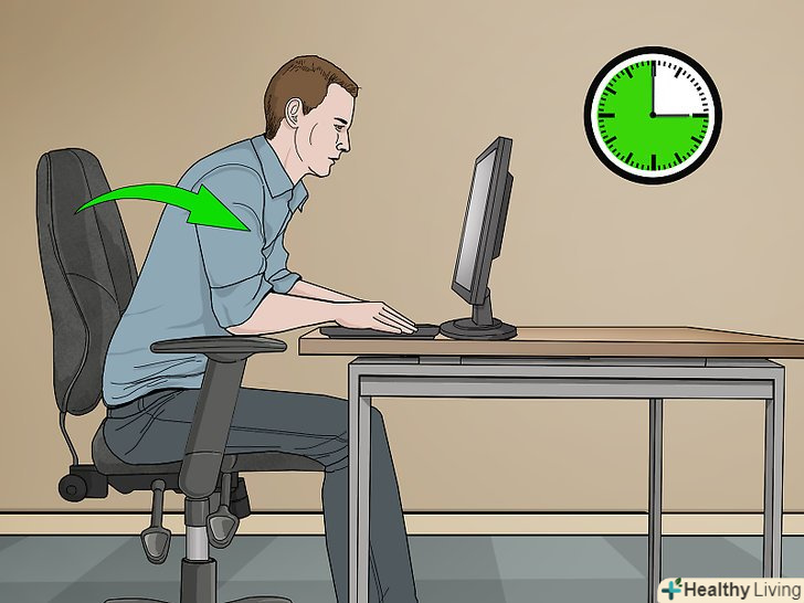 Змінюйте своє положення кожні 15 хвилин. це допоможе запобігти перенапруження та інші проблеми. Якщо вам не потрібно регулювати висоту крісла для виконуваної роботи, можна спробувати просто міняти своє положення. Наприклад, тимчасово схиліться вперед, а потім знову поверніться в повноцінне положення сидячи. Також можна трохи переносити свою вагу з одного краю крісла на інший. [5]
