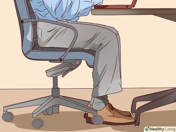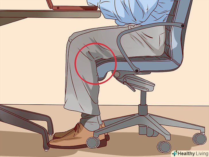 Переконайтеся, що ваші ноги розташовані на правильному рівні щодо сидіння. Коли ваші стопи стоять рівно на підлозі, покладіть пальці між частиною стегна біля коліна і передньому краєм крісла. Між стегном і сидінням повинен бути проміжок шириною в палець.- Якщо у вас дуже великий зріст, і проміжок між стегном і сидінням більше ширини пальця, вам знадобиться зробити крісло і робоче місце вище, щоб висота була правильною.