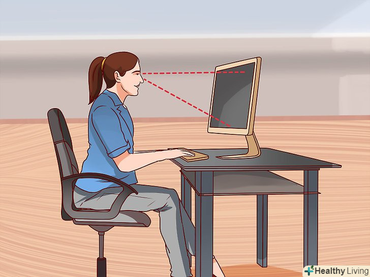 - Якщо вам потрібно підняти очі, щоб дивитися на монітор, вам знадобиться знайти спосіб розмістити його нижче, щоб він знаходився прямо перед вами. [2]