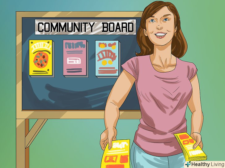 Поширюйте буклети у відповідних місцях. Придумайте простий, привабливий буклет для реклами свого підприємства. Завжди вказуйте контактну інформацію і конкретні характеристики робіт, за які ви можете взятися. Подумайте над найкращим способом їх поширення, щоб не втратити час і гроші, надрукувавши даремні буклети. Дотримуйтесь поради вище, вивчіть місцеві закони і подумайте де потенційні клієнти більш найімовірніше побачать ваш буклет.- Клінінгові або інші компанії з широким клієнтським охопленням можуть з успіхом поширювати ваші буклети в кожен будинок або організацію в околицях. [4] якщо агітація без дозволу незаконна у вашій місцевості, розгляньте можливість згорнути буклети навпіл і відправити їх поштою, не купуючи конверти – але не слід очікувати, що більш, ніж 5% людей відгукнуться на цей спосіб. [5] [6]