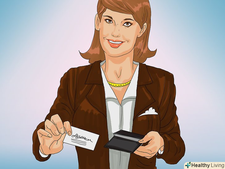 Зробіть собі візитні картки. зверніться до порад в мережі, щоб дізнатися, як робити бізнес-картки або знайдіть онлайн-сервіс для їх створення. Зберігайте пачку візиток у себе в гаманці або в захисному футлярі і роздавайте їх друзям, сусідам і всім, з ким ви стикаєтеся на публіці.- Використовуйте більш щільний папір для роздруківки візитних карт і виріжте їх акуратно за допомогою різака для паперу, а не ножиць.
