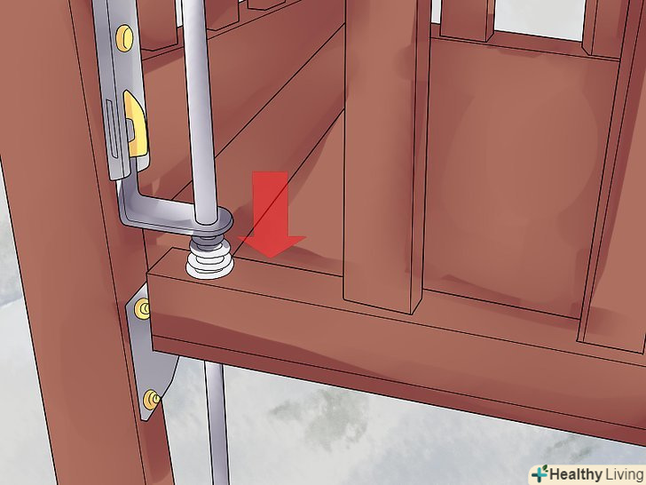 Проведіть вільні пружини і вставте їх в нижній отвір в нижній частині коліщаток. з одного краю підтримуючої частини матраца можуть бути дві вільні пружини. Натягніть їх на кронштейн і вставте в нижній отвір нижньої частини коліщаток. Це запобіжить їх падіння на підлогу.