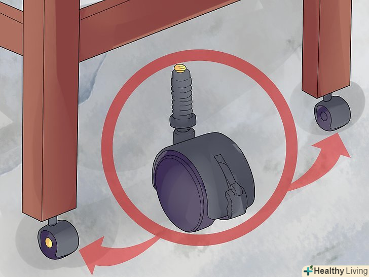 Прикріпіть коліщатка, якщо хочете. на деякі ліжечка можна прикріпити коліщатка з нижньої сторони. Протягніть їх в отвори з нижньої сторони ліжечка і закріпіть їх. Намагайтеся, щоб вони були прикріплені правильно.- На коліщатках можуть бути спеціальні скріплюють елементи, які допоможуть запобігти рух ліжечка по кімнаті, поки ваша дитина знаходиться в ній.